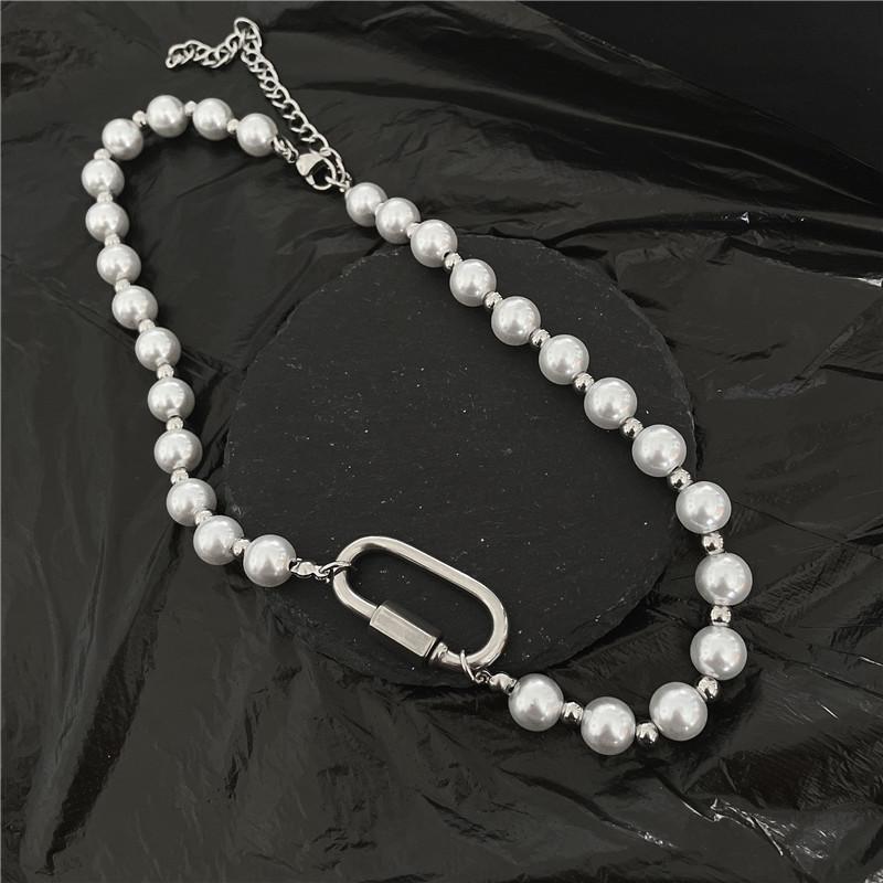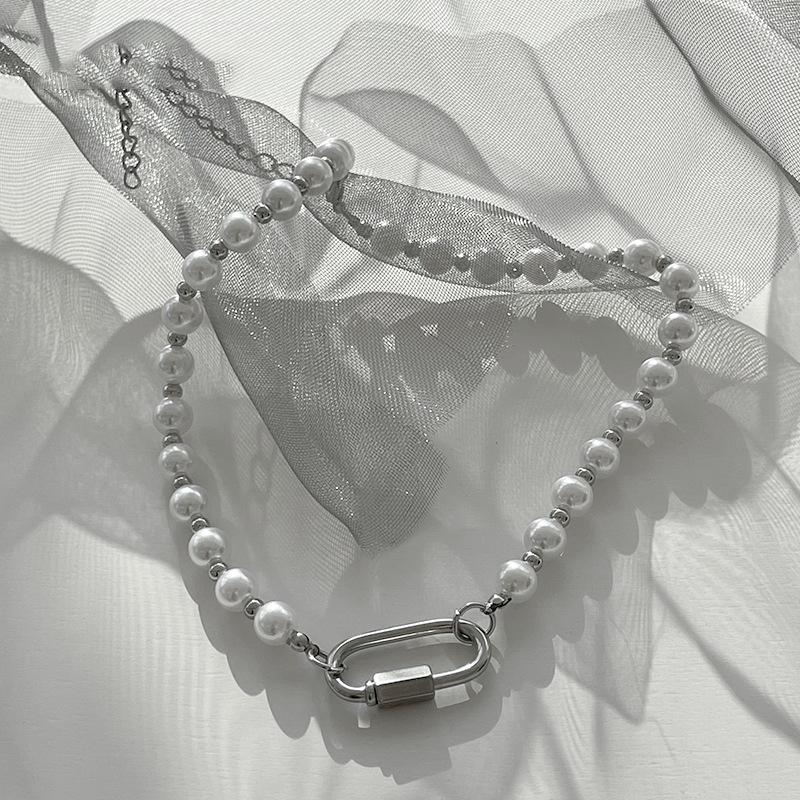 重工珍珠钛钢拼接项链男小众设计感潮款嘻哈登山扣情侣项链配饰潮 |