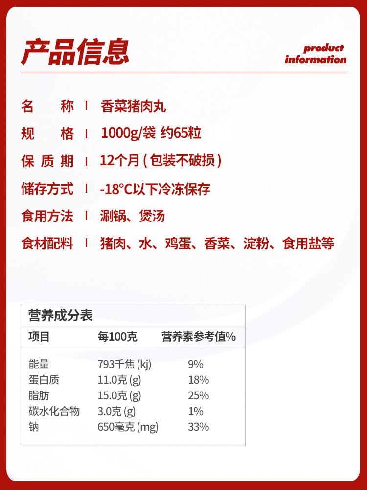 售卖方式:包装|商品条形码:6922711402482|是否进口:否|是否低温存储:是|品牌:龙凤|原产地:山东|产品类别:速冻鸡肉丸|净含量(规格):1000|保质期:12个月|生产厂家:山东凤祥食品发展有限公司|原料与配料:详情见包装|生产日期:详情见包装|储藏方法:冷冻|产品标准号:SB/T 10379|生产许可证编号:SC10437152115405|货号:105012|包装规格:1kg/包 25个|供货时间:全年|适用场景:商用|储存条件:冷冻