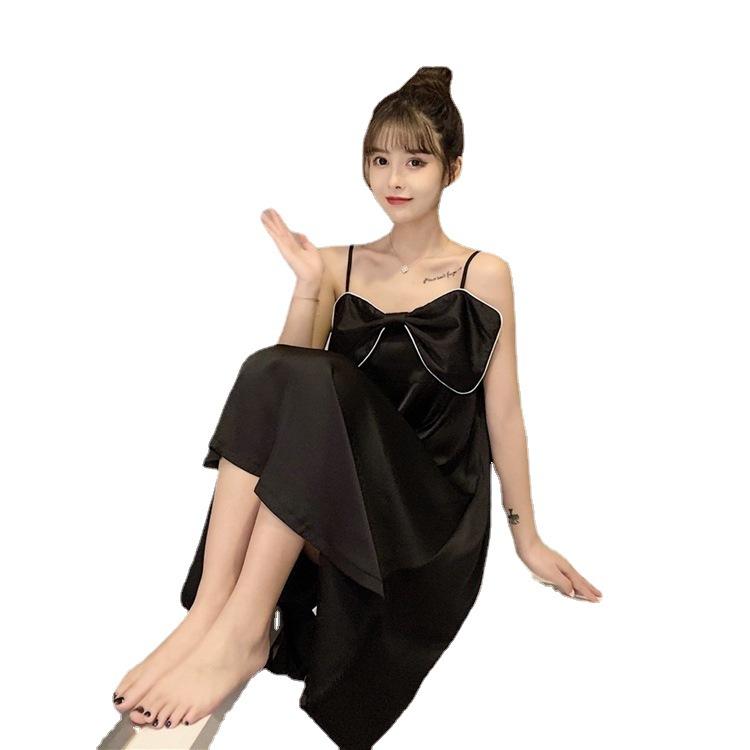性感冰丝睡裙女士大蝴蝶结可爱少女直播学生中长款家居服外贸跨境 |