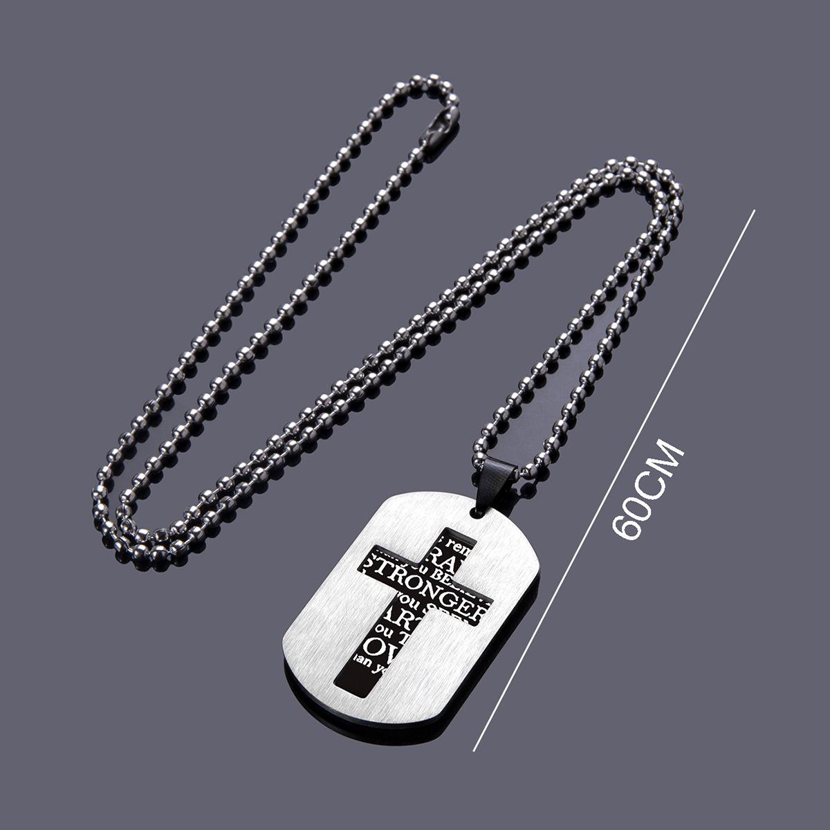 材质:不锈钢|处理工艺:电镀|品牌:芳拓|生产编号:kc027|销售序列号:kc027|造型:字母/数字/文字,其他|货号:BXN272|产地:义乌|链子样式:圆珠链|是否多层:否|坠子材质:不锈钢|周长:51cm(含)-80cm(含)|主要下游平台:ebay,亚马逊,wish,速卖通,天猫,独立站,LAZADA|颜色:款式一|有可授权的自有品牌:是|是否跨境出口专供货源:是|流行元素:十字架|上市年份/季节:2023年春季|风格:嘻哈|重量:23.5g|风格分类:个性风潮|主要销售地区:非洲,欧洲,南美,东南亚,北美,东北亚,中东,其他|适用人群:男女通用|流行元素分类:形状/图案