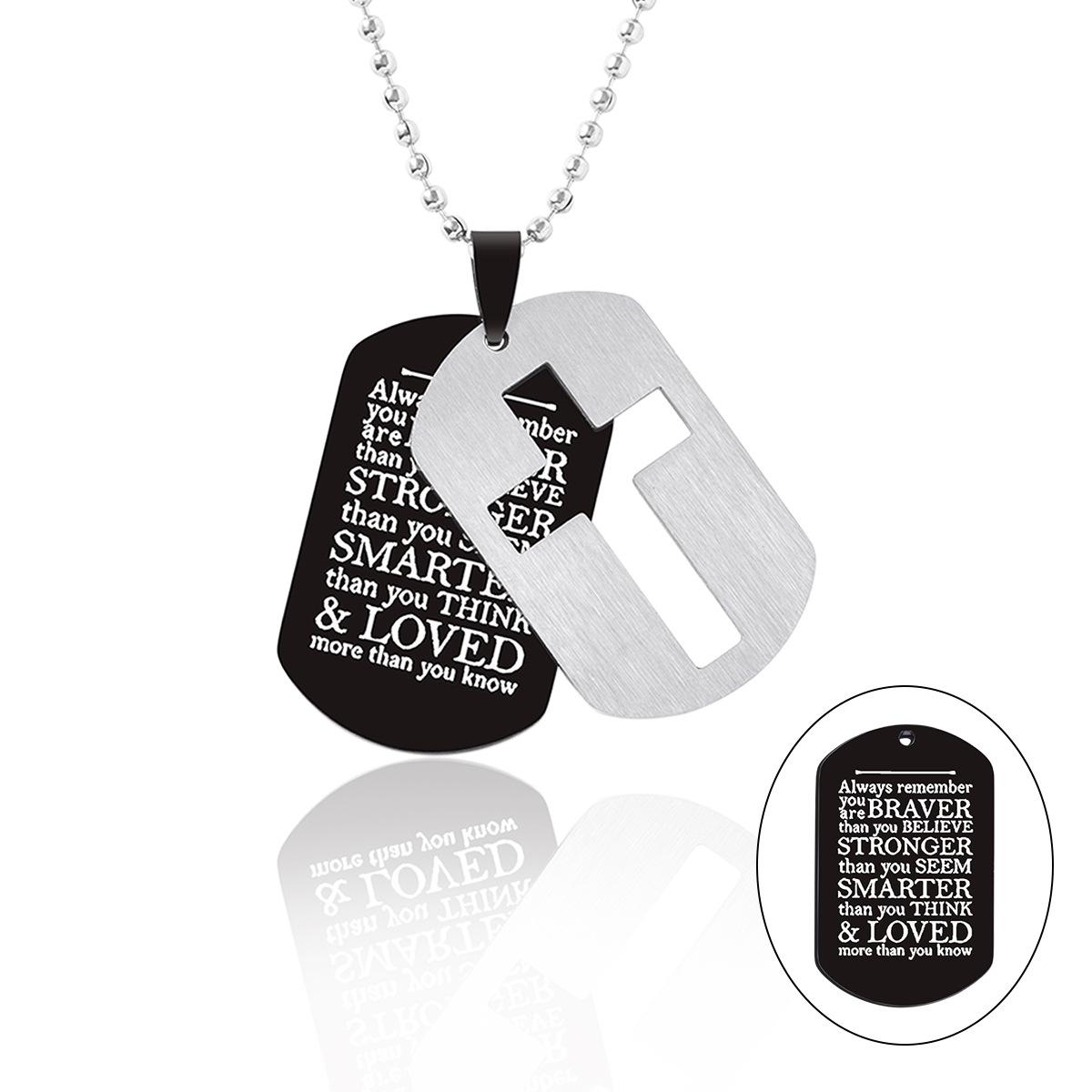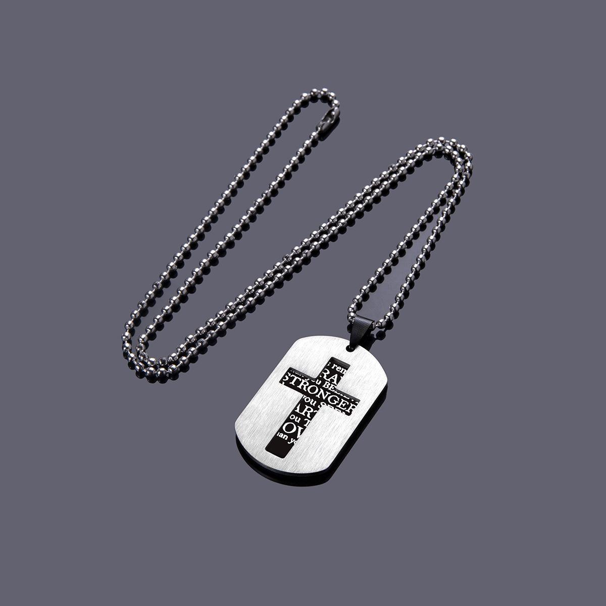 新款镂空十字架双层军牌字母项链男士不锈钢配饰嘻哈潮人配饰批发 |