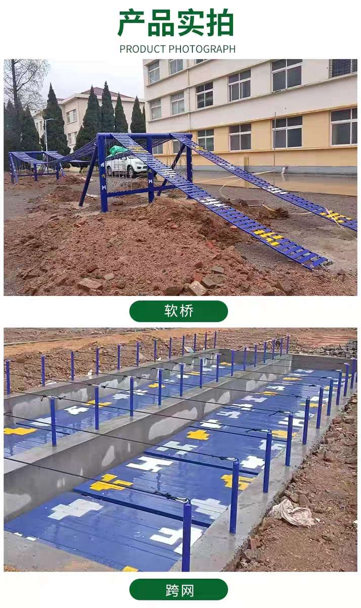 产地:河北省沧州市|材质:钢木结合|颜色:军绿色|品牌:胜川|产品分项:软梯 螺旋梯 高低横木 绳网 轮胎攀台 摇摆平台 晃动横梯 跨网 阻绝墙 模拟沙滩|工艺:静电喷涂|适用场所:训练基地