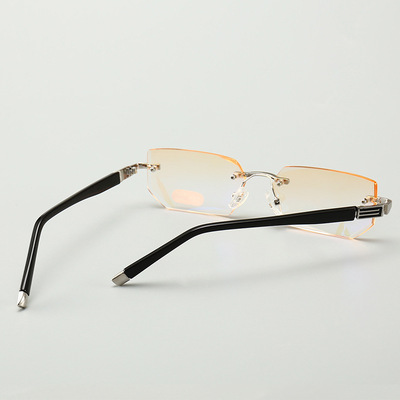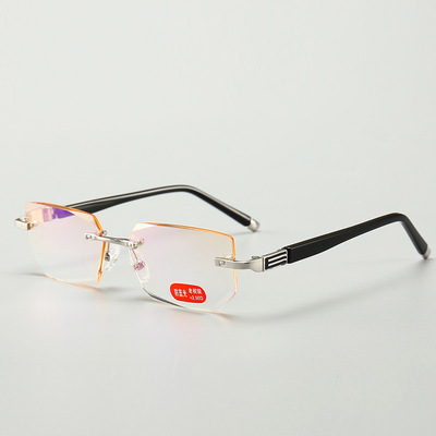 年轻态老花镜时尚男士防蓝光辐射钻石切边无框平光眼镜跨境 |