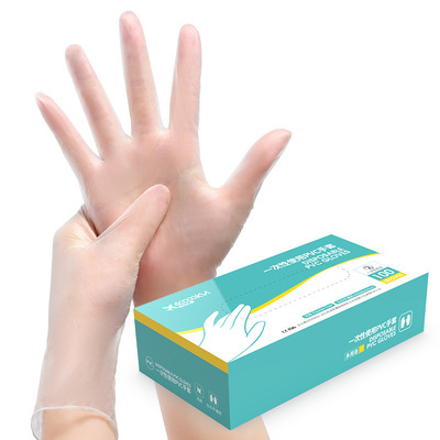 一次性PVC手套透明防护盒装无粉手套100支/盒装白色手套 |