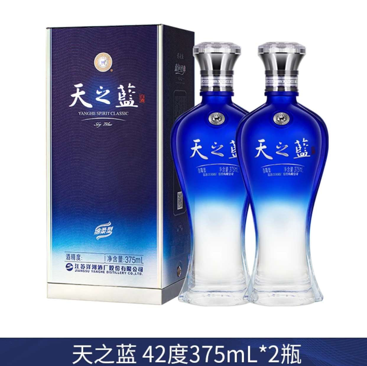 洋河蓝色经典 天之蓝双瓶装 绵柔白酒宴请42度375mL*2瓶