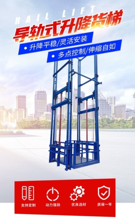导轨式液压升降货梯一种非剪叉式液压升降货梯,升降货梯的特点导轨式液压升降货梯采用重型链条传动,油丝绳做保险,导轨式液压升降货梯采用液压防爆油管,设有防止超载的安全装置、设有多重限位开关保护、设有开门断电保护装置、设有漏电保护装置、设有多层楼互动连锁,因此导轨式液压升降货梯的安全系数比普通货梯要高很多;是使用非常广泛的货物垂直运输设备。它通过电机驱动油泵,依靠油缸驱动重型链条带动液压升降货梯平升降,由于采用液压作为升降动力,具有载重量大,升降平稳等特点,广泛应用于建筑高层之间货物垂直运送。导轨式液压升降货梯采用油缸和链条传动,运动部件较少,因此维护工作量比剪叉式液压升降货梯要少;导轨式液压升降货梯结构紧凑,采用的轴承比剪叉式液压要少,它的使用寿命要比剪叉式液压升降货梯长很多;导轨式液压升降货梯采用液压传动,因此载重量比较大;导轨式液压升降货梯的传送高度比剪叉式液压升降货梯高很多,可达几十米,稳定性也比剪叉式液压升降货梯好;导轨式液压升降货梯下降采用自身重量和货物重量,因此比普通货梯运行要经济;液压升降货梯采用plc可编程控制器,能实现智能控制和显示、同时线路简单,故障率低。济南沃力宸升降机械有限公司销售二部:王经理手机:15064099111座机:0531-84255788传真:0531-84255799 |