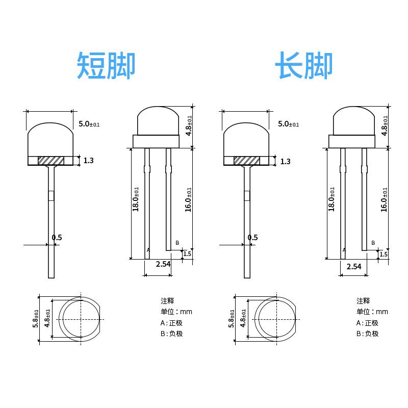 5mm发光二极管 f5草帽 透明各色灯珠 长脚led草帽灯珠 F5草帽灯珠 |
