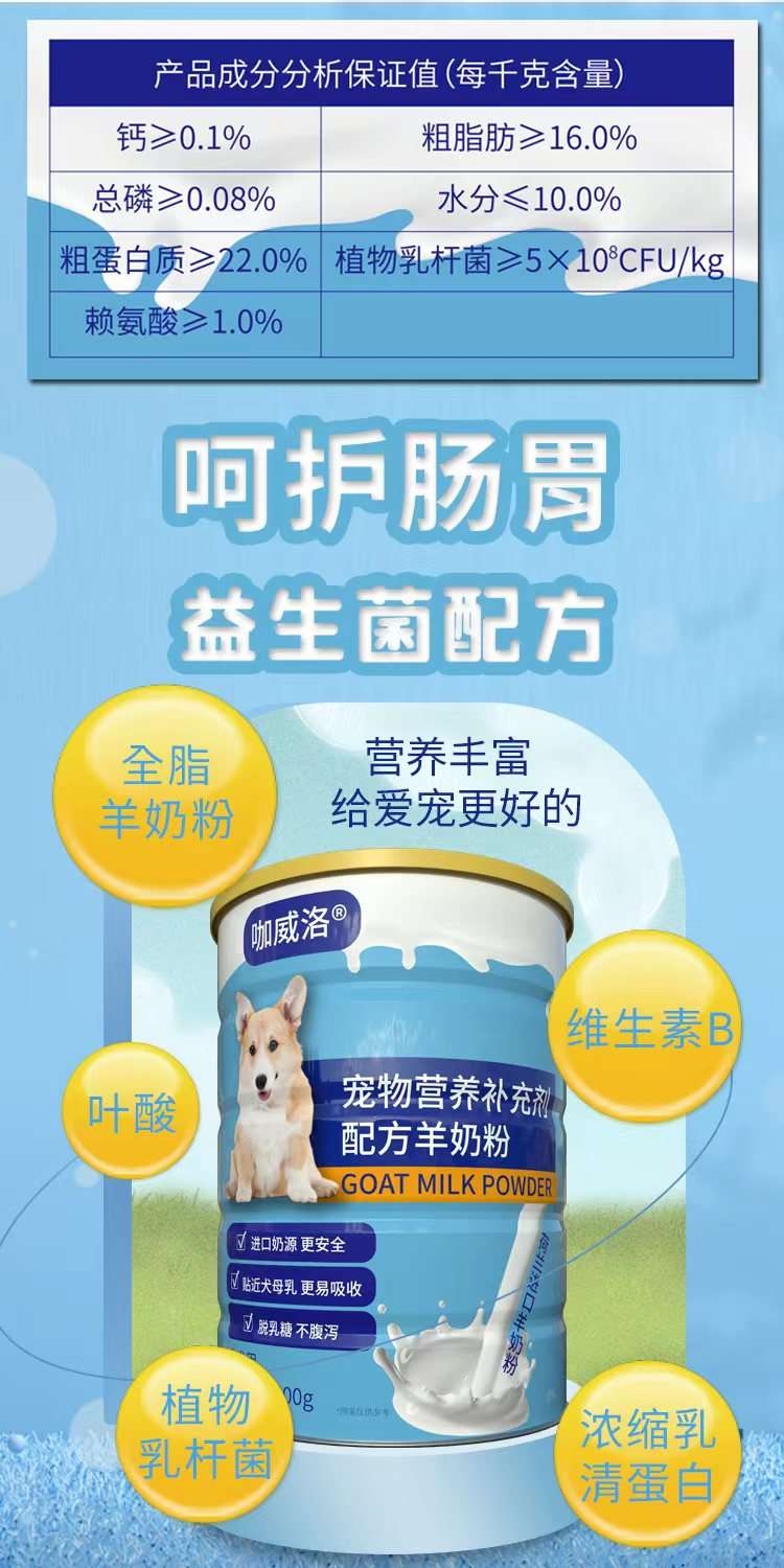 宠物营养配方羊奶粉是荷兰进口羊奶粉,奶源更安全,贴近母乳,更易吸收,脱乳糖,不腹泻,羊奶粉含量 65%