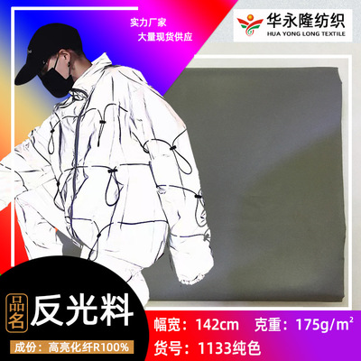 货源类别品质标准:中国纺织行业标准(FZ)|品名:反光料|成分及含量:高亮化纤R100|密度:询问客服|纱支:询问客服|克重:175(g/㎡)|幅宽:140cm|织物组织:平纹|染整工艺:涂层|具体用途:裤装,上衣,休闲服,工作服,时装,羽绒服,棉服,运动服|货号:1133|别名:3m反光|适用季节:秋冬|花型工艺:扎染|印花风格:其它|品牌:其它|流行元素:欧美|用途:风衣 夹克 嘻哈服装等|是否跨境出口专供货源:否|同行:舜尧 盈兴 源昌盛 双明。