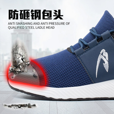 春夏新款透气飞织劳保鞋 休闲运动拼色低帮钢包头防砸耐磨安全鞋 |