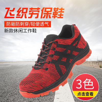 跨境新款飞织劳保鞋男防砸防刺穿透气防滑钢头防砸鞋安全鞋工作鞋 |